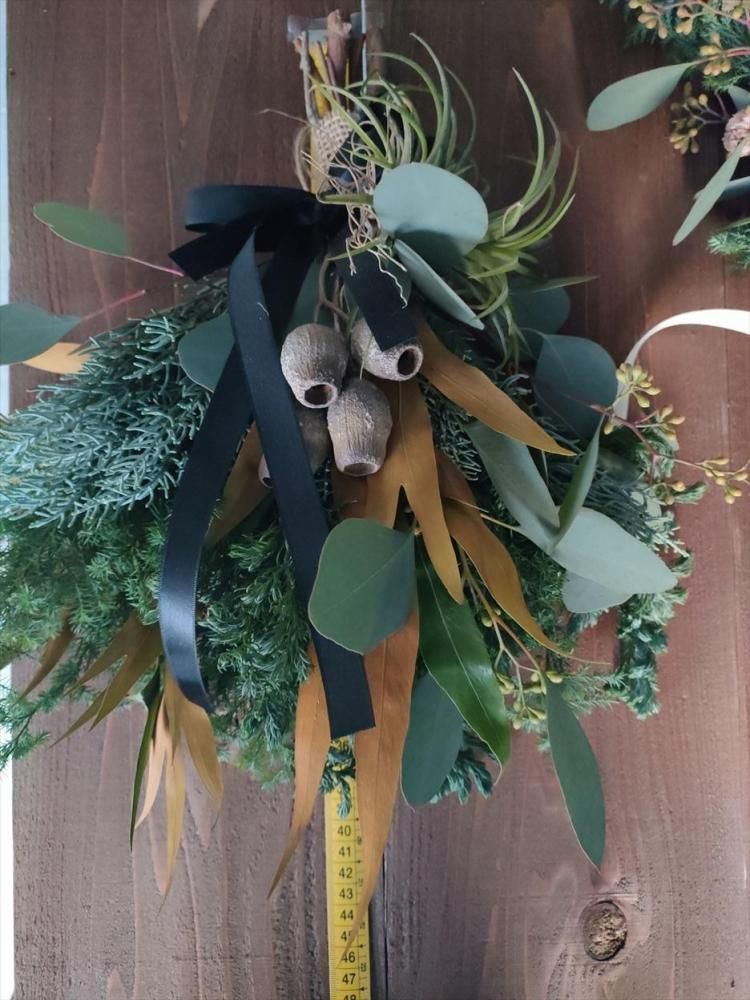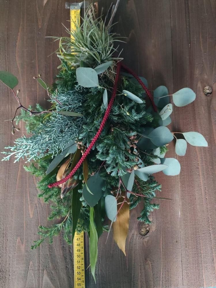 自然素材を使用したスワッグは、季節の贈りものやクリスマスギフトにもぴったり。